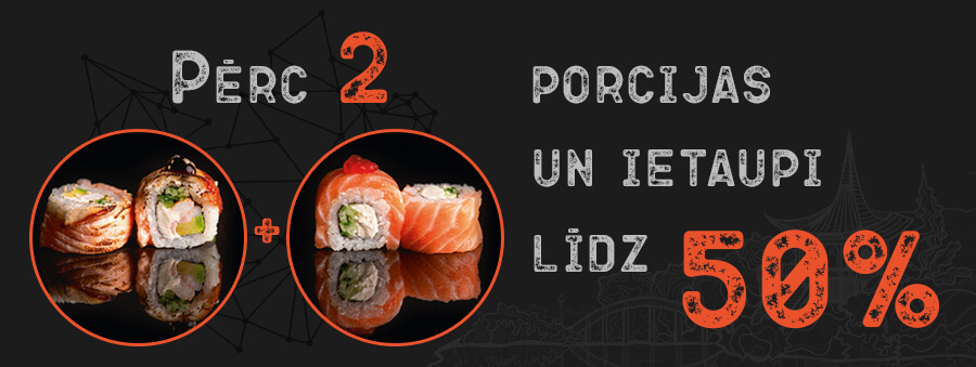 Suši rīsi, tīģergarneles, kimči burkāni, gurķis, avokado, čili, daikons, nori čipsi, sweet chilli fusion mērce, ponzu mērce, melnās sezama sēklas